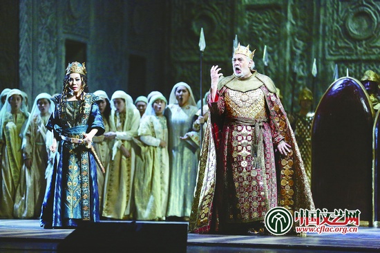 二○一三年五月二十二日國家大劇院自制歌劇《納布科》首演,歌唱家多明戈在劇中飾納布科 王小京 攝