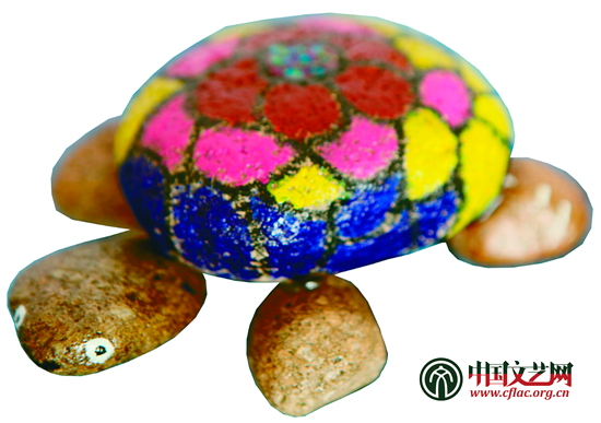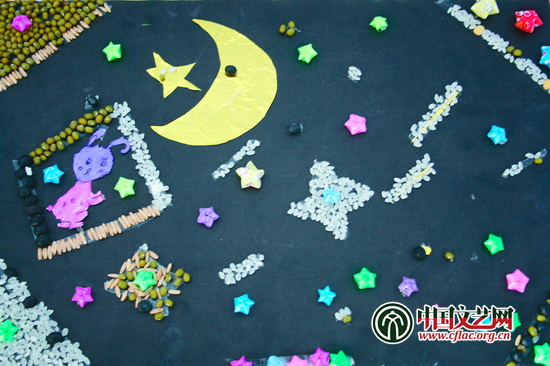 支教老師在材料缺乏的情況下發揮想象,就地取材,石頭、種子皆可作畫