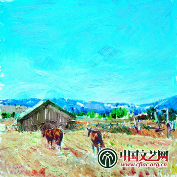 在油畫中引入水墨意象與線條之美,是幾代中國畫家對油畫這一舶來品的獨特探尋。步入展廳,無論是歐洋的《蹉跎歲月》、徐福厚的《大視野》,還是金長征的《祈》、宋玉的《秋天的胡楊》,他們或是重在線條的敏感,或是著力于色調(diào)的純澈,又或是實驗皴擦的肌理,雖形式有別,實則卻同是將傳統(tǒng)中國畫法融入創(chuàng)作的不斷嘗試。畫家藍威的《何處西風》更是豪放地運用大寫意的筆觸,將書法性的用筆引入油畫語言的實驗中來。