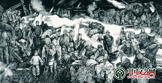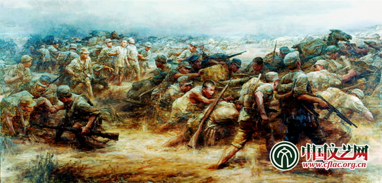 挺進大別山 過黃泛區(油畫) 240cm×480cm 秦文清