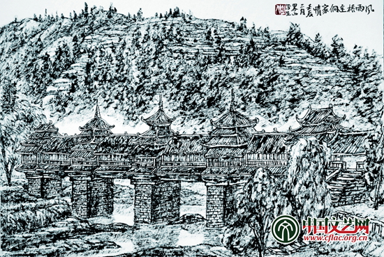 風雨橋連侗家(國畫) 25cm×37.5cm 王界山
