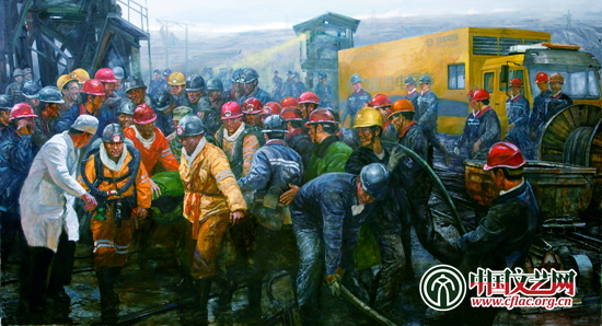 為了井下的階級兄弟(油畫) 350cm×180cm 孫立新