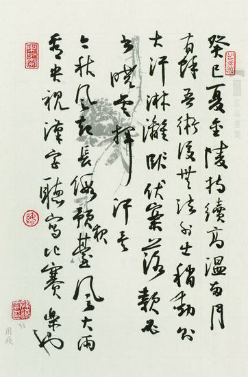 “現(xiàn)在,書法和社會是兩張皮,感覺總也融入不了?!北菊共哒谷舜髦眷鹘榻B,如何讓書法融入社會與時代,是他策劃此次以內(nèi)容為主的展覽的最初動因:“可以長篇大論,可以小情小調(diào),可以歌頌贊揚(yáng),可以鞭撻諷刺……藝術(shù)的形式、風(fēng)格,各個時代、每個人都有不同,但精神必然會打上時代的烙印——就像祭侄,反映出歷史的一個很大的畫面?!?/p>