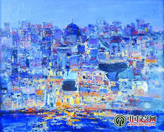 我在油畫技法和語言上的嘗試,借鑒了國畫的寫、線、皴等因素和手法,而且在境界上與中國傳統(tǒng)繪畫發(fā)生了關(guān)系,在油畫的中國化方面不斷探索。這使油畫與中國傳統(tǒng)藝術(shù)的精要發(fā)生契合關(guān)聯(lián),我的色彩世界絕非自然風(fēng)景的客觀色彩,而是以文人寫意方式表現(xiàn)具有中國精神元素的油畫,在色彩的溫和揮灑和擺脫文人水墨畫偏于內(nèi)省和歸隱的傾向上,更顯視覺張力。