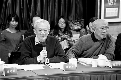 昨日,周有光之子周曉平(左)在會上發言。 李夢迪 攝