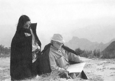 1987年,作者陪張仃在泰山玉皇頂寫生