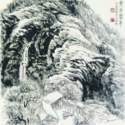 從山中回到北京,他又日夜被畫困擾,不得安寧。常常黎明前起床,一人悄悄去畫室作畫。餓了,便隨便抓起什么如冷饅頭、面包、包子之類吃起來,之后又繼續畫。等到清晨我醒來,他已畫成一幅四尺對開斗方山水,即使是三九天也會出一身汗。每作畫前必先洗手,像不曾會作畫的人,像兒童或生手一樣,開始進入工作狀態,把所有既成之法度拋之腦后,而后依據所畫對象的紋理姿態下筆寫神寫意。