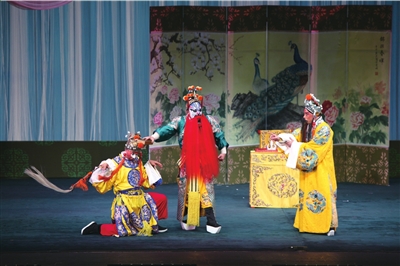 20日晚,李勝素、于魁智分別領(lǐng)銜的《貴妃醉酒》《打金磚》打響頭炮。兩個(gè)故事都跟“酒”有關(guān),一個(gè)是醉酒的貴妃苦等皇帝不歸,另一個(gè)是因喝酒誤殺了滿朝老臣。兩個(gè)傳統(tǒng)戲不但唱段多,而且做功重,特別是《打金磚》最后一場(chǎng)中,年過(guò)半百的于魁智接連做出“吊毛”“僵尸”“甩發(fā)”等絕活,表演干凈利落,臺(tái)下觀眾掌聲不斷。