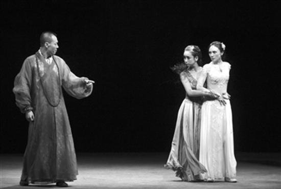 “白蛇傳”的故事在常見的戲曲演出中,本就是一出文武并重的戲。尤其是“盜仙草”“水漫金山”更是有眾多的武打開場(chǎng)。而這次話劇版《青蛇》田沁鑫也讓有著七年戲曲功底的秦海璐、袁泉在舞臺(tái)上分別化為青蛇與白蛇,時(shí)而云步飄飄,時(shí)而靈動(dòng)自如,漂亮的身段讓人著迷。尤其是“水漫金山”一場(chǎng)戲,倆人的表演結(jié)合戲曲和現(xiàn)代舞動(dòng)作,再加上大量臺(tái)詞,十分考驗(yàn)表演功力。而田沁鑫更是很大限度地挖掘了演員自身的魅力——懵懂單純的青蛇、情專意切的白蛇、“慈悲惹波瀾”的法海、還有俊美癡弱的許仙,不僅演員飾演的角色之間反差很大,而且每個(gè)角色也都加入了許多新意或徹底顛覆。