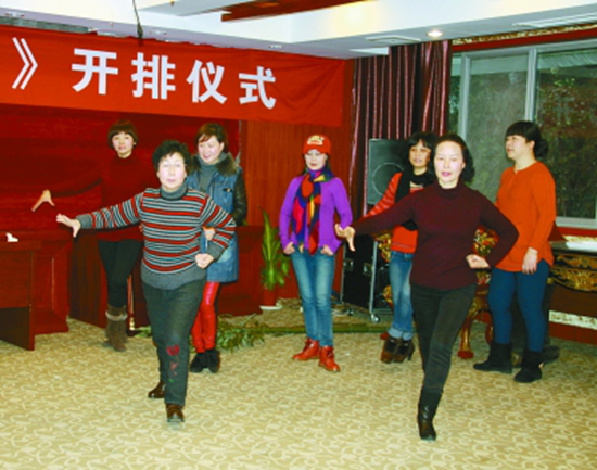為了演好越劇《清官樊瑩》,導演張品珍(前排左)指導演員吳慧君(前排右)排練動作。 嚴進生 攝