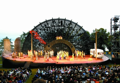 8月16日,德國(guó)柏林第二屆萬塞湖歌劇音樂節(jié)開幕,上演由德國(guó)著名導(dǎo)演福爾克·施隆多夫編排的經(jīng)典歌劇《卡門》?!犊ㄩT》是享譽(yù)世界的上演率最高的一部歌劇,其中著名的《斗牛士進(jìn)行曲》及開場(chǎng)曲《卡門序曲》、《阿拉貢舞曲》早為世人耳熟能詳,而吉卜賽姑娘卡門也成為西方歌劇史上久演不衰的經(jīng)典藝術(shù)形象。圖為觀眾在萬塞湖畔水上舞臺(tái)觀看《卡門》。