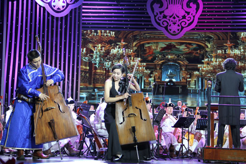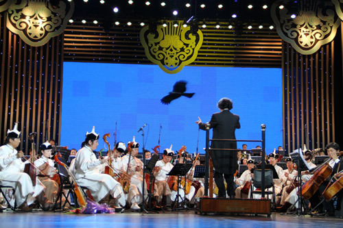 在演奏形式上,本場音樂會除了呈現出獨奏、重奏、與齊奏等多種演奏法的獨特風格外,還將馬頭琴的“三種定弦五種演奏法”融為一曲,將同樣列入聯合國“人類口頭和非物質文化遺產”名錄的長調、呼麥也融入其中,充分展示了蒙古族音樂的獨特藝術魅力。