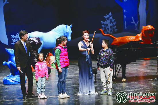 北京國際音樂節兒童音樂會上,竹笛演奏家唐俊喬與現場小觀眾互動