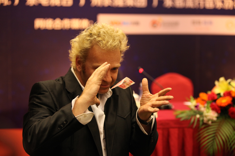 美國幻象魔術大師法蘭茨?哈拉利現場表演人民幣懸浮術