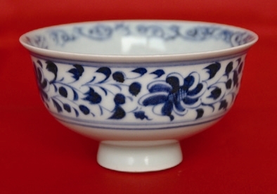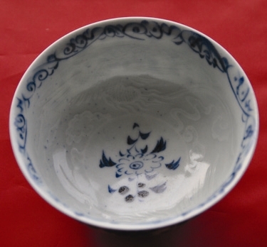 圖2、3是日本松岡美術館藏元青花魚藻轉枝蓮紋圓口大盤局部特寫圖的撒藍效果,系在生坯上繪制圖案后用筆沾青料隨意甩撒形成的,達到了瀟灑自然、妙趣天成的藝術效果。