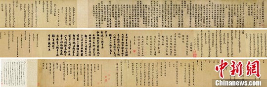 12月3日,堪稱國寶的元人書法長卷《瑞鶴詩》在北京匡時秋拍夜場以1.012億元成交。據北京匡時國際拍賣有限公司董事長董國強介紹,此件從美國舊金山征集來的拍品,為上海最后一任道臺蔡乃煌后人所珍藏。中新社發(fā) 楊可佳 攝