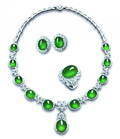 天然翡翠配鉆石項鏈、戒指及耳環套裝