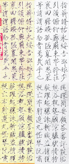 臨摹可以形似,而神擬絕不可能。早報(bào)記者昨天對(duì)比上海博物館藏《千字文》與此次拍賣(mài)的《千字文》,可以看到明顯的區(qū)別,對(duì)于上海博物館藏《千字文》,誠(chéng)如書(shū)畫(huà)鑒定家楊仁愷先生所云:“其結(jié)體疏朗端正,下筆尖而重,行筆細(xì)而勁,撇捺出筆鋒而利,橫豎收筆頓而鈞,整體道麗瘦硬。”而拍賣(mài)的這件《千字文》,用筆浮滑輕飄,局促小氣,隨處可見(jiàn),而轉(zhuǎn)折處交代不清,所有的捺都軟弱無(wú)比。