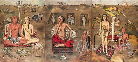 請看2011年的油畫拍賣記錄:張曉剛的《生生息息之愛》拍出了7906萬港元的天價,登上了當代藝術品價值的頂峰;曾梵志的《自畫像》和《豹》都以超過3000萬港元成交;劉小東的《違章》以3640萬元成交;冷軍的《肖像之一――小羅》以3136萬元成交;劉野的《齊白石知道蒙德里安》以2912萬元成交;艾軒的《圣山》以2072萬元成交;王沂東的《新娘》以1900多萬元成交……眼看著這些當代藝術家昂首挺胸、堂而皇之地進入千萬元俱樂部,成為畫家中的“貴族”,不知羨煞了多少同行中人。