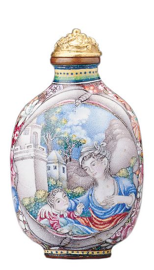 銅胎畫琺瑯西洋母子圖鼻煙壺