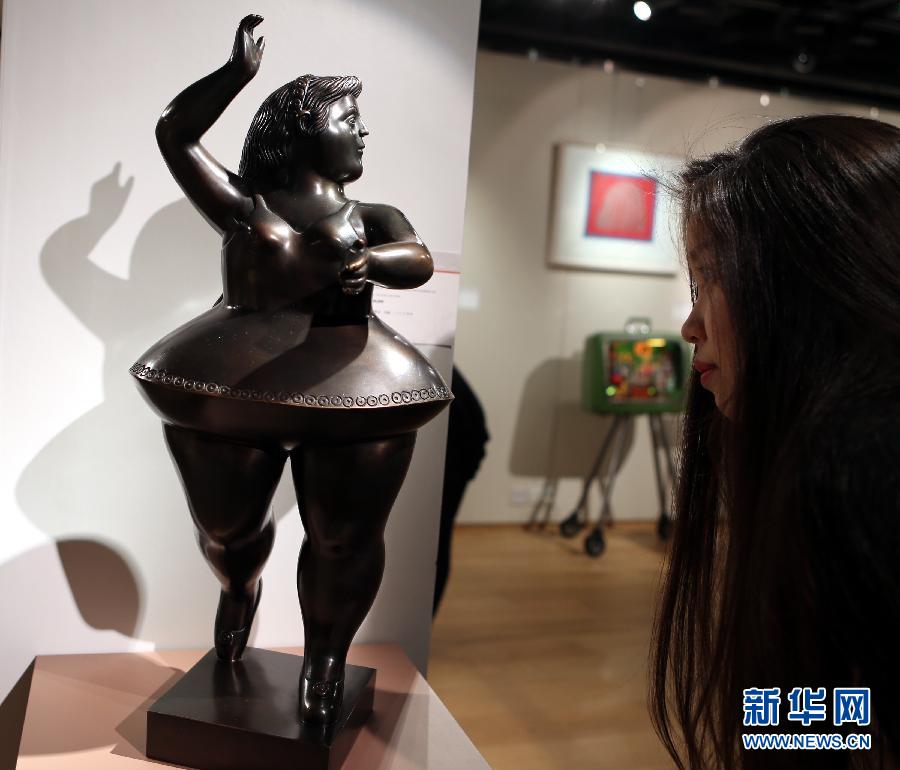??? 11月29日,一位觀眾在香港蘇富比《無(wú)界:當(dāng)代藝術(shù)》拍賣(mài)預(yù)展上觀看費(fèi)爾南多·波特羅的銅雕作品《芭蕾舞者》,該作品估價(jià)275—350萬(wàn)港幣。香港蘇富比將于12月3日在港舉行《無(wú)界:當(dāng)代藝術(shù)》亞洲及西方當(dāng)代藝術(shù)拍賣(mài)會(huì),這是蘇富比在亞洲舉行的首場(chǎng)同類(lèi)型拍賣(mài)會(huì)。本次拍賣(mài)會(huì)共有80多件拍品,總估值4700萬(wàn)—6800萬(wàn)港幣,作品涵蓋油畫(huà)、雕塑、版畫(huà)、攝影作品等多種題材。(新華社記者 李鵬 攝)