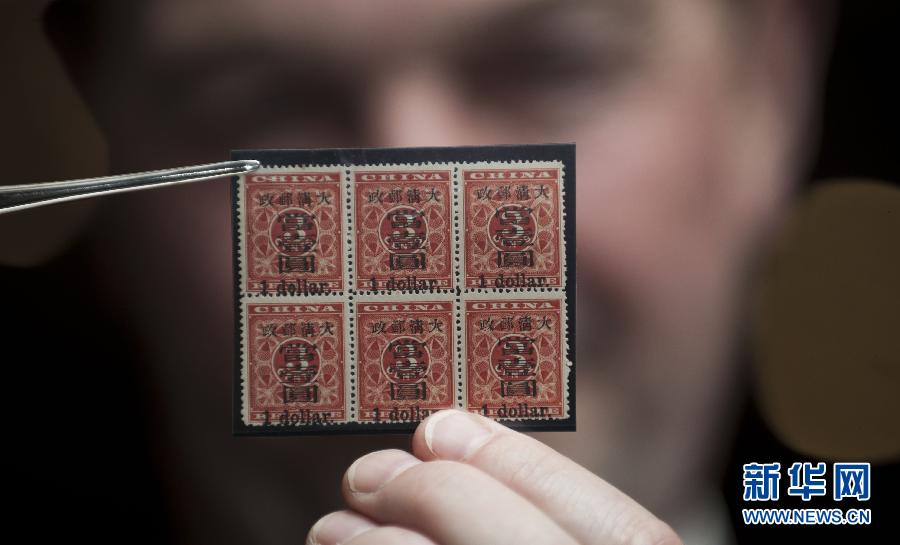 ?? 1月8日,郵票專家尼爾·格蘭杰在展示1897年紅印花加蓋3分大字當壹圓六方連票,估價250萬至300萬港元。當日,斯賓克拍賣行宣布將于1月13日在香港舉行珍罕郵品拍賣會。 (新華社記者 呂小煒 攝)