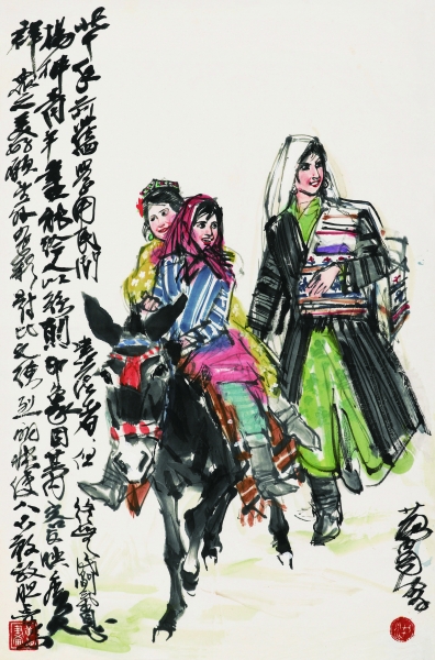 黃胄 《趕集圖》 設(shè)色紙本 69.5厘米×46厘米 中國嘉德供圖