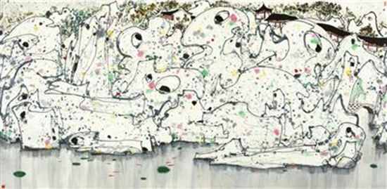 吳冠中《獅子林》1988年作144×297cm設色紙本