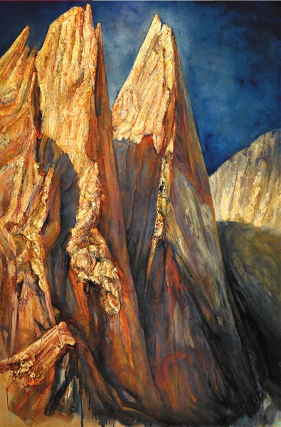 每年假期,丁方都會帶學生去西北寫生。之所以選擇此地,丁方說中國西部由于水少、風大、晝夜溫差巨大而形成的雅丹地貌是他創作的源泉。“沒有植被,山脈赤裸裸地展現在人們面前,這就好像是人的裸體。”