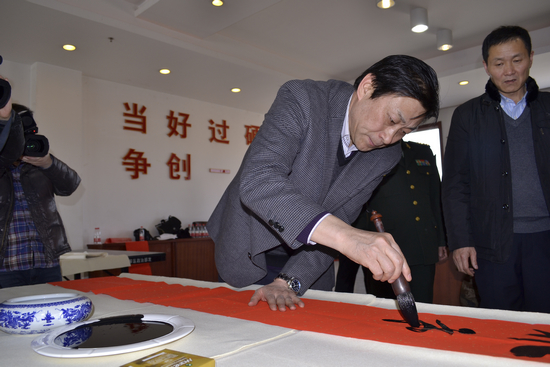 新春的腳步聲清晰可聞,濃濃的年味兒撲面而來。2月6日(農歷臘月二十六),由山西省政協常委、省文聯黨組書記、省書協副主席張根虎帶隊,山西省文聯、山西大眾書畫院與山西省書法家協會、山西省美術家協會、山西省攝影家協會組成的“送歡樂下基層書畫攝影進軍營”慰問團一行30人,帶著黨和政府的溫暖來到太原市國防教育訓練中心進行慰問和文化服務,為這里的官兵們送上一份豐富的節日文化大餐,受到廣大官兵的熱烈歡迎。