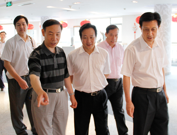 7月25日,中國文聯領導接見湖北省文聯一行。圖為湖北省委常委、宣傳部部長尹漢寧一行在中國文聯辦公廳主任夏朝華的陪同下,參觀中國文藝家之家。 中國文藝網 劉刈 攝