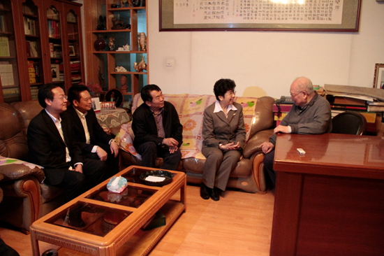 3月21日,趙實(shí)一行在四川調(diào)研期間走訪著名文藝家、84歲的李煥民老人。