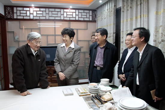 3月21日,趙實(shí)一行在四川調(diào)研期間走訪著名文藝家、99歲的馬識(shí)途老人。