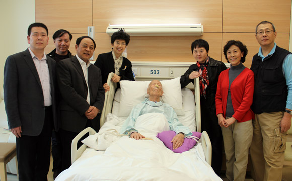 于老聽聞趙實同志親切的問候,雖口不能言,但面露笑容,流露出內(nèi)心高興。在大家退出病房之后,于老又示意家人將大家喚回,再次表達對中國文聯(lián)的感謝。