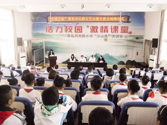 5月21日上午,青島市文聯(lián)在青島市鄭州路小學(xué)舉行“文聯(lián)萬家”文藝志愿支教點揭牌儀式。同時宣布“青島市文藝志愿服務(wù)團”和十大文藝家協(xié)會組成的“文藝志愿者服務(wù)隊”成立。