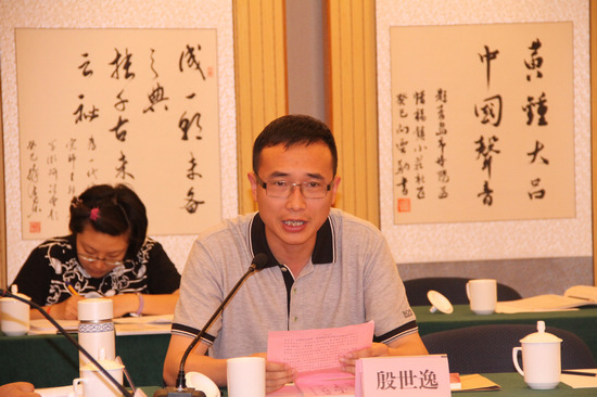 中共青島城陽區區委常委、宣傳部部長殷世逸向參會專家、領導介紹情況 孟祥寧 攝