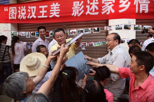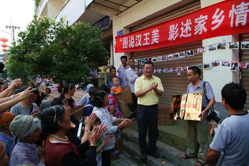 在為期一天的活動中,攝影志愿者還舉辦了手機攝影作品展,展出了志愿者們利用前一天采風創作的反應當地風土民情的手機攝影作品,同時,選取部分漢王鄉當地群眾手機攝影作品一并打印參展。當日逢場,數百名漢王群眾觀看了展覽,賈躍紅、王國榮、王成為觀展群眾贈送了攝影畫冊。