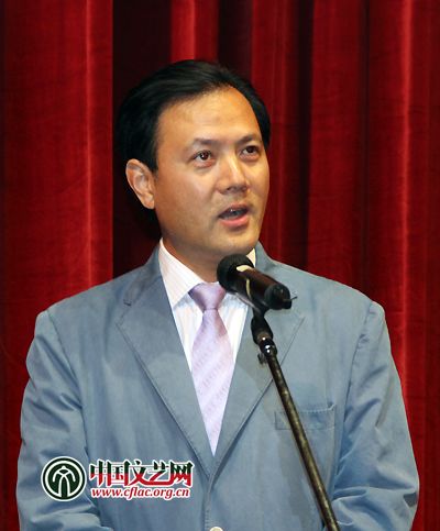 曼谷時間10月30日晚,由中國文聯與中國駐泰國大使館主辦、曼谷中國文化中心承辦,“今日中國”藝術周首場綜合文藝演出在泰國皇家旋宮劇院上演。圖為中國文聯黨組成員、書記處書記李前光致辭。中國文藝網 王春梅 攝