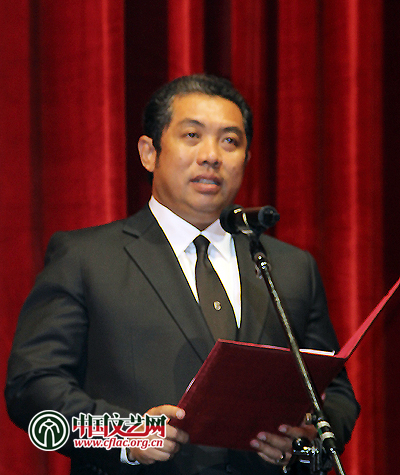 曼谷時間10月30日晚,由中國文聯與中國駐泰國大使館主辦、曼谷中國文化中心承辦,“今日中國”藝術周首場綜合文藝演出在泰國皇家旋宮劇院上演。圖為泰國文化部部部長頌塔亞·坤本致辭。中國文藝網 王春梅 攝