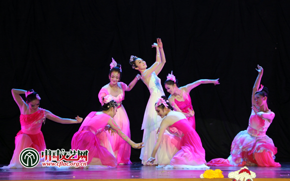 曼谷時間10月30日晚,由中國文聯與中國駐泰國大使館主辦、曼谷中國文化中心承辦,“今日中國”藝術周首場綜合文藝演出在泰國皇家旋宮劇院上演。圖為山翀等帶來女子群舞《牡丹七仙》。中國文藝網 王春梅 攝