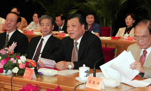 吉炳軒、李樹文、覃志剛、仲呈祥等與張魯交談。
